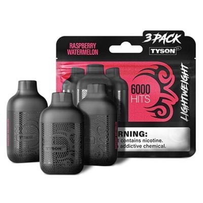 Want a sweet and tangy vape? Raspberry Watermelon Tyson 2.0 Lightweight Disposable 6000 Puffs 3 Pack pairs tart raspberry with juicy watermelon for a bright, flavorful hit. Each disposable is pre-filled with 4ml of 5% nicotine salt e-liquid and offers 2000 puffs. The total of 6000 puffs in the pack makes it a great value. Powered by a 550mAh battery and Fyre mesh coil, these devices heat evenly to provide smooth vapor and rich flavor. Their lightweight, portable design is ideal for vaping anywhere.  Raspberry Watermelon Tyson 2.0 Lightweight Disposable 6000 Puffs 3 Pack Features and Specifications: • Ejuice Capacity: 4ml Pre-filled x 3• Nicotine Strength: 5% • Puff Count: Total 6000 Puffs – 2000 Puffs in each• Battery Capacity: 550mAh• Fyre Mesh Coil