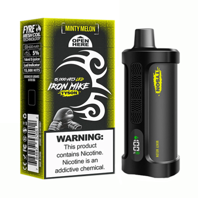 Tyson 2.0 Iron Mike 15000 Hits Minty Melon Disposable Vape offers a refreshing minty melon flavor in a sleek, rechargeable design. With an impressive capacity of 15000 hits, it ensures long-lasting enjoyment. Its compact size makes it portable and convenient for on-the-go vaping. The rechargeable feature adds sustainability, allowing users to enjoy their favorite flavors without the need for constant replacements. Designed for simplicity and reliability, this vape delivers a smooth and satisfying experience with every puff. Whether you’re a seasoned vaper or new to the scene, the Tyson 2.0 Iron Mike promises a flavorful and hassle-free vaping experience. Tyson 2.0 Iron Mike 15000 Hits Minty Melon Disposable Vape Features and Specifications: • Prefilled Capacity: 14mL• Integrated 600mAh Rechargeable Battery• Battery Capacity: 600mAh• Max Puffs: 15000• Nicotine Strength: 5% (50mg)• Operation: Draw-Activated• Heating Element: Mesh Coil• Charging: Type-C Port